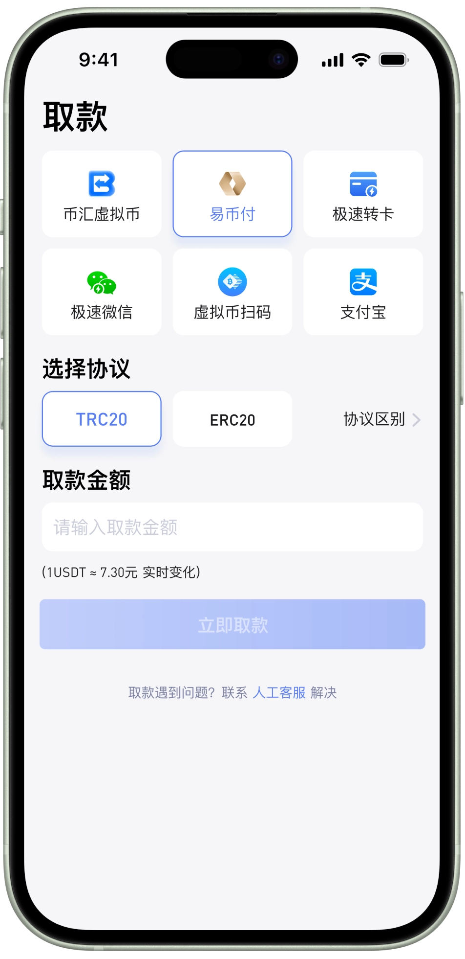 多元化支付渠道、更多币种选择、极速存取
